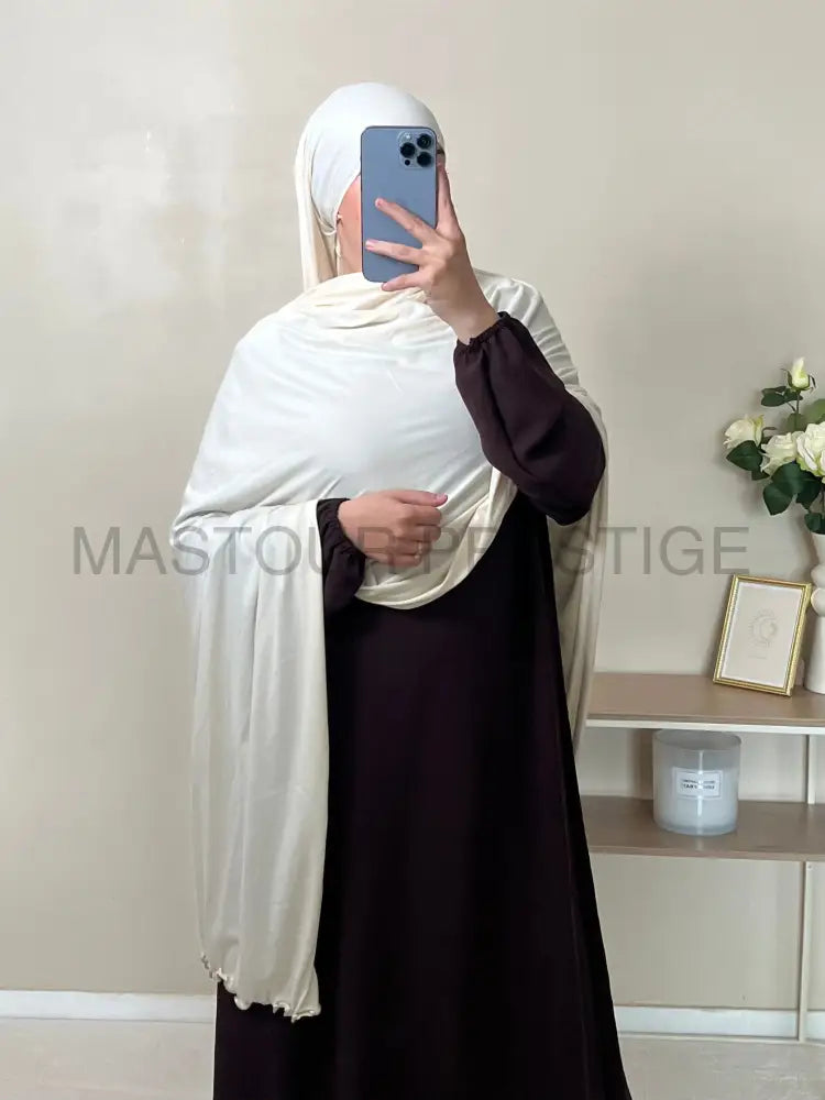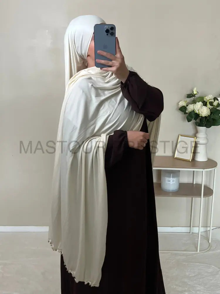 Adoptez l'élégance au quotidien avec notre hijab en jersey , parfait pour celles qui recherchent un foulard long, couvrant et tendance . Sa texture douce et bouclé offre un tombé naturel qui sublime toutes vos tenues, des plus simples aux plus habillées.